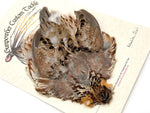 Mega Quail skin is a large variety of the Bobwhite Quail. This bird’s natural plumage ranges in vivid colors of copper dun to barred black and white this is sure to become a favorite for soft hackles wet flies. How many new combinations can you think of with such a wide variety of feathers?