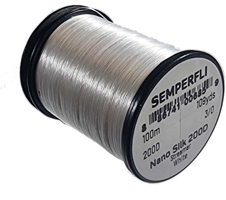 Nano Silk Streamer thread is the perfect thread of choice for streamers and predator patterns with the flat profile it is also ideal for chironomids, traditional flies, and ribbing. The 3/0 Nano is finer than most 6/0 polyester or rayon threads on the market with a stronger breaking strength.