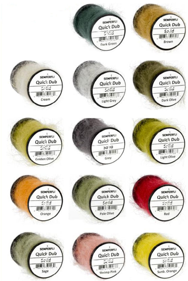 Dubbing can be created by using dubbing loops, wax and thread, however Semperfli Quick Dub is intended to make tying simpler and faster. With the thread and correct quantity loose fibers for either dries and wet fly patterns this ready made dubbing makes tying faster and simple.