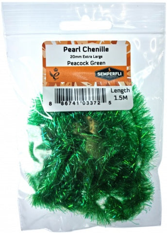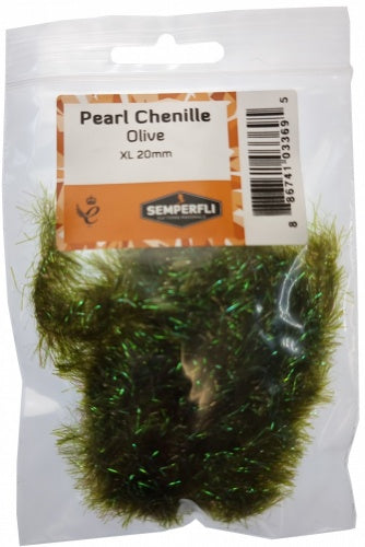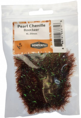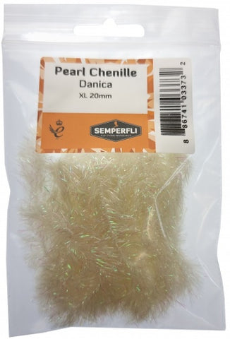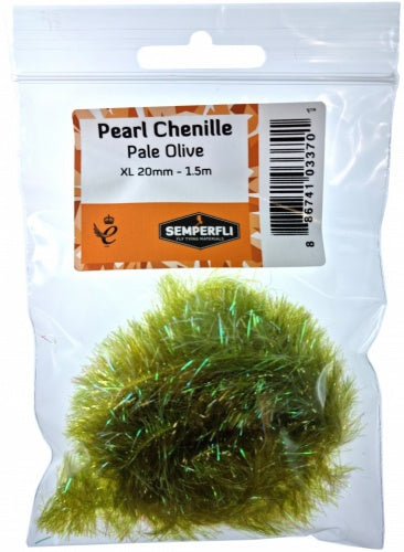 Pearl Chenille 20mm XL is part of a range of pearl chenille's tinted with dyed tinsel for added flash. The Pearl Chenille's are available in 1mm, 3mm, 8mm, 10mm, 20mm and 30mm. Available as single color packs Semperfli Pearl Chenille is the basis of Semperfli Game Changer packs to create the stunning articulated flies.