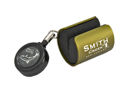 The Smith Creek Rod Clip™ is a cool and unique streamside essential tool that allows you hands free access to change flies, net fish, or get that picture without putting the fish under any undue stress. It is a wearable fishing rod holder that holds your rod so that your hands are free to tie on a fly, or show off that trophy fish they've just landed. It holds your rod securely in place, and out of the way so it can’t be accidently knocked free. This device helps keep debris out of your reel, helping it last longer and perform better. No you don't have to lay your rod on the ground while releasing a fish.