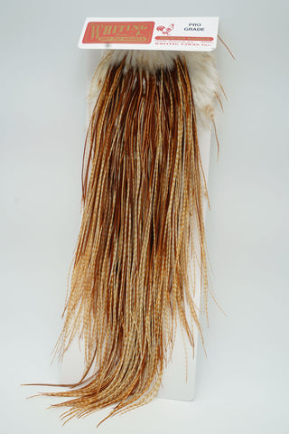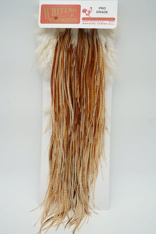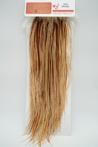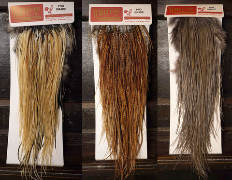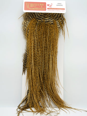 The ultimate in dry fly tying! If you have never used Whiting Dry Fly Hackles, you will not believe how good they are until you try them. With long supple quills and incredible barb density capable of tying down to size 26 and even smaller, Whiting Genetic Dry Fly Hackle is the connoisseur’s choice for fly tying. This product line derives it heritage from the legendary Hoffman grizzly super hackle stock and has been selectively bred since the mid 1960's specifically for fly tying.